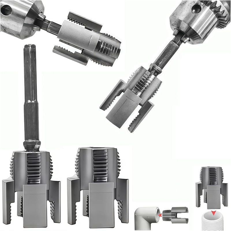 - [Lightweight & Portable PVC Pipe Threader Kit] – This PVC pipe threader kit weighs next to nothing and docks right onto your standard cordless drill. Whether you’re on a ladder, in a crawlspace, or out in the yard, you’ll have pro-grade threading power