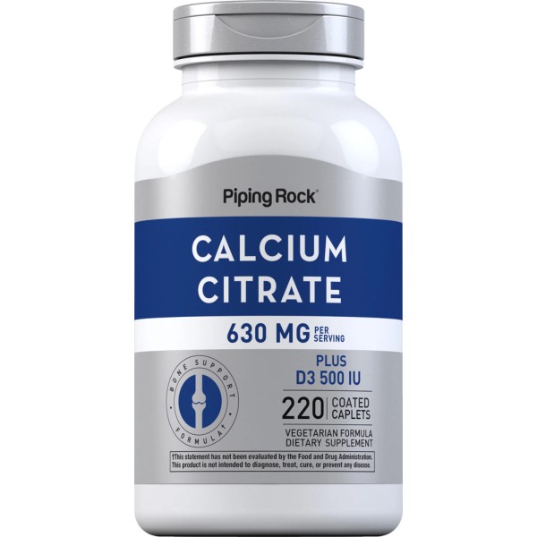 Piping Rock Calcium Citrate with Vitamin D3 | 630mg | 220 Caplets | by Piping Rock