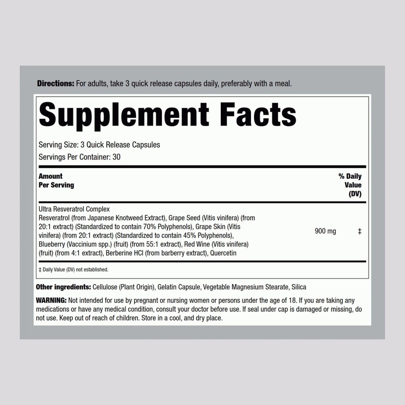 Piping Rock Piping Rock Resveratrol Berberine Grape Seed & Quercetin | 90 Capsules | Non-GMO, Gluten Free Supplement