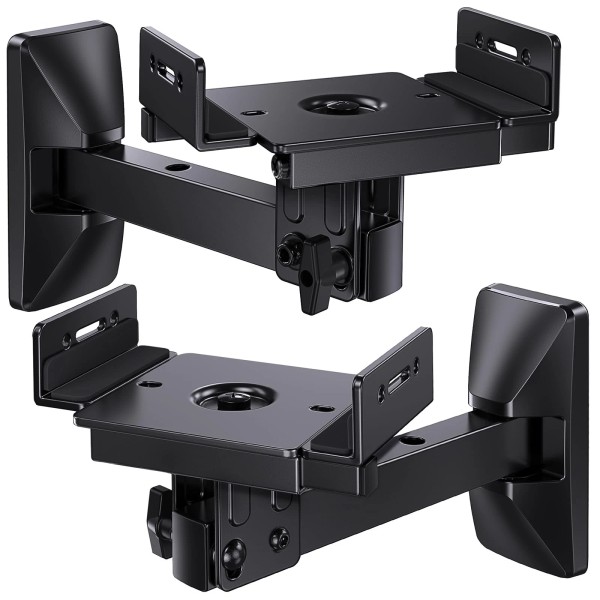 【Ideal Speaker Positioning】The knob design and the arm length is 9.10" to enjoy a better sound experience. Simply direct the bookshelf speaker wall mount using the tool-free adjustment including +/-10° tilt, +/-45° swivel, and 360° rotation for a wide range of flexibility, and can be installed in the corner.