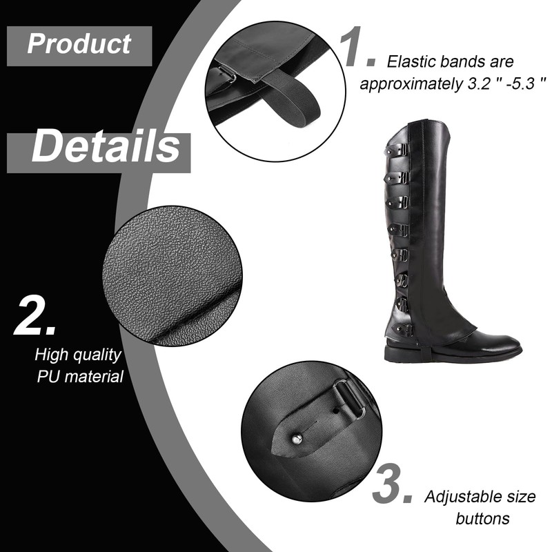 - High Grade Faux Leather - Our cosplay boot covers material Looks like genuine leather, feels like genuine leather, but doesn't harm animals. We love animals and all living creatures! this PU fabric is soft and comfortable to wear. Added extra detail to Knight Warrior Cosplay costumes.