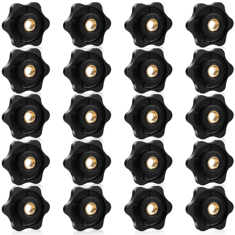 Piriuuo 20 Pcs 1/4-20 Knob 6 Star Knobs T Track Bolts Knobs 1/4 Inch 20 Female Threaded Knobs Hexagon Knob Nuts Jig Knobs Clamping Knobs