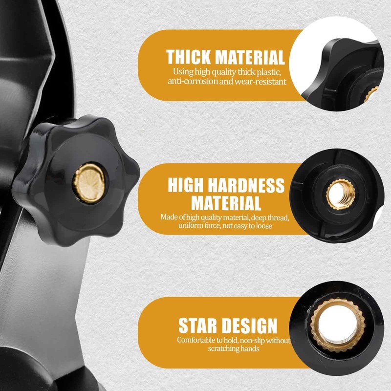 - Easy to Use: These 1/4-20 thru threaded knobs adopt a 6-star shape design, which is easy to use, saving time and effort, helping you to easily loosen or tighten and keep stable.
