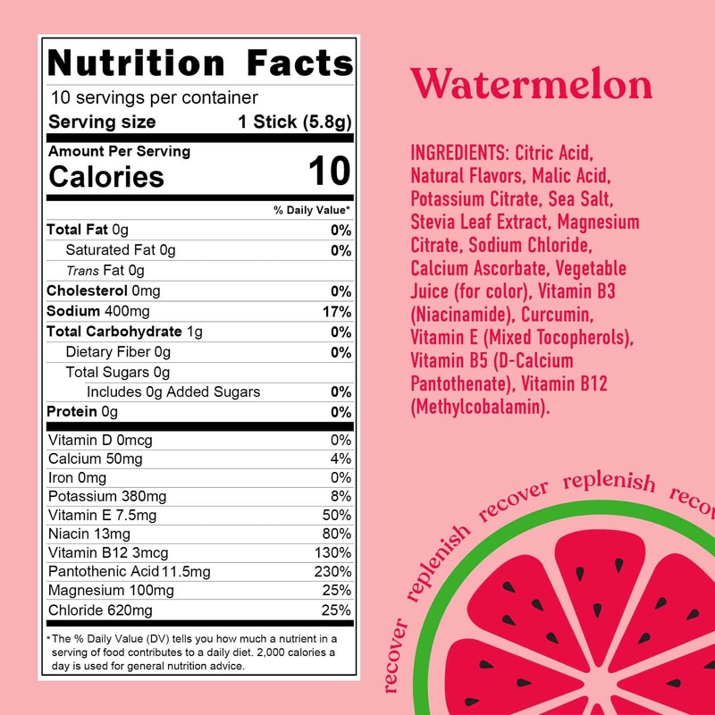 Pirq Hydration - Watermelon - Hydration Powder Packets | Electrolyte Drink Mix | Curcumin | B Vitamins | Zero Sugar | Keto Friendly | 10 Sticks