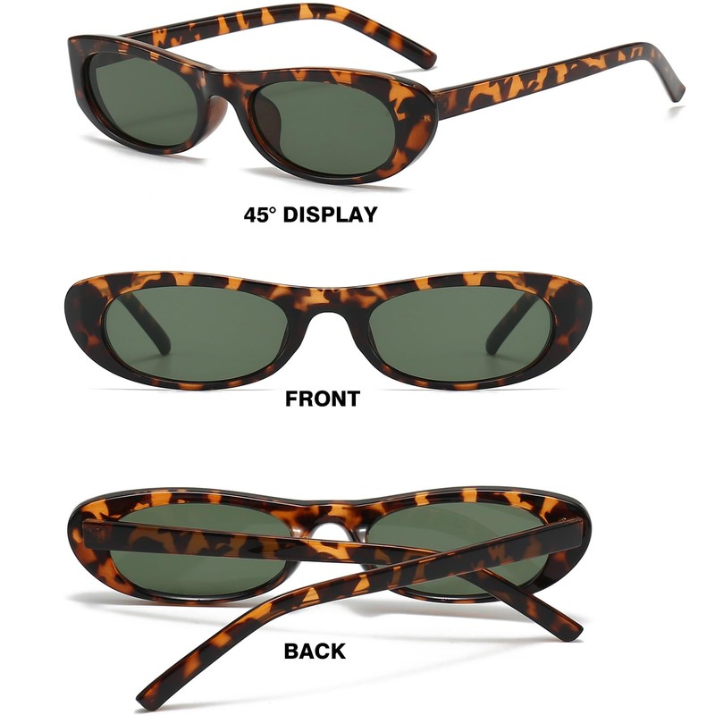 piscm Trendy Oval Sunglasses for Women Men Fashion Narrow Tiny Glasses Retro 90s Skinny Sun Glasses Black Tortoise Shell Glasses(Tortoise/Green)