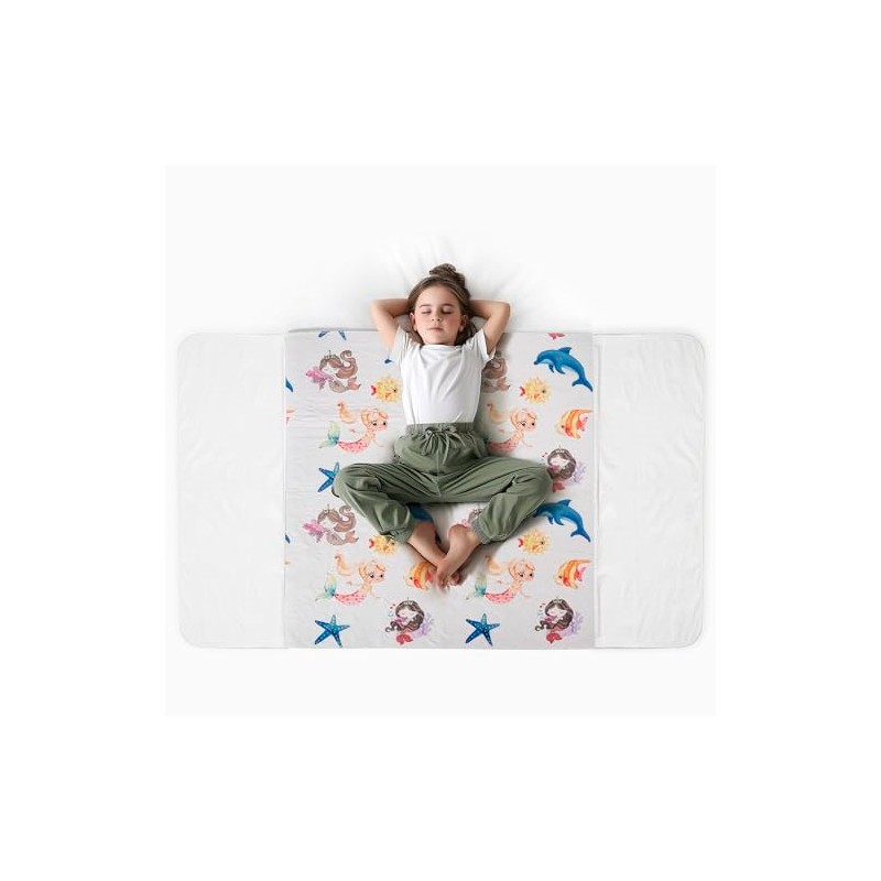 - SUPER ABSORBENT - Ideal for your child's nighttime accidents that can't control the pee yet. Our bed pad with 4 layers of protection keeps your mattress 100% dry. The potty training mattress protector measures 91 x 86 cm with comfortable wings for changing. Fits all single beds and is versatile in any situation.