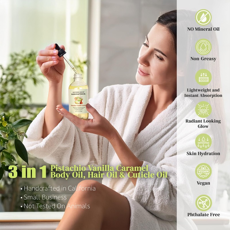 Soothing House Pistachio Vanilla Caramel Body Oil - Nourishing Body Moisturizer for Soft, Glowing Skin with Jojoba & Almond Oil (4 fl oz)