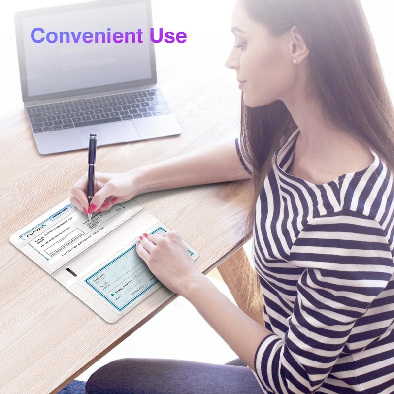 - 【Lightweight and Portable】 The check book covers for women and men, measuring 7 x 3.7 x 0.4 inches and weighing only 54 grams, is easy to store and carry around in all types of bags for any occasion