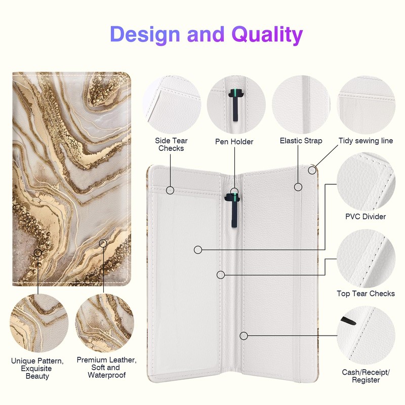 - 【Quality Material】The chequebook cover is made from high quality, soft, eco-friendly pu leather with a padded interior designed to provide excellent protection, and the elastic band closure ensures that your cheques are safe and secure whilst allowing easy access when needed