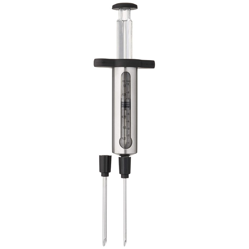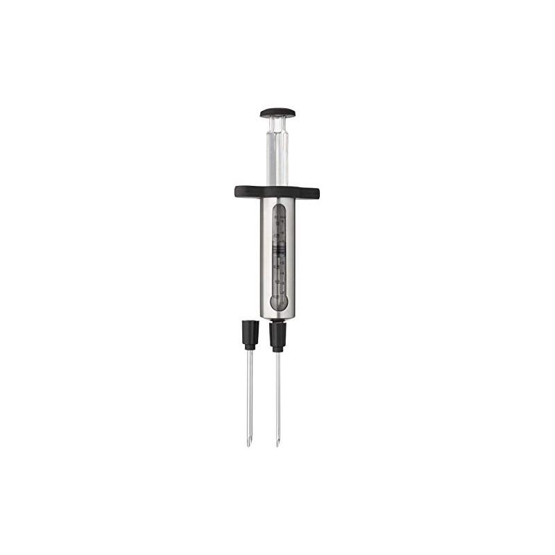 PIT boss stainless steel 50 ml marinade Injector is ideal for steak, chicken, Turkey, & more, the high-quality kitchen tool infuses marinade into all your favorites. Forget the old method marinating overnight or planning hours ahead of time. Injection is a convenient alternative to traditional marinating, where flavor sometimes just sits on the surface, the marinade Injector infuses marinade deep inside, beyond the surface. Our two professional style needles ensure even distribution & optimal flavor throughout. The pit boss marinade Injector is a great gift for grillers or home cooks.