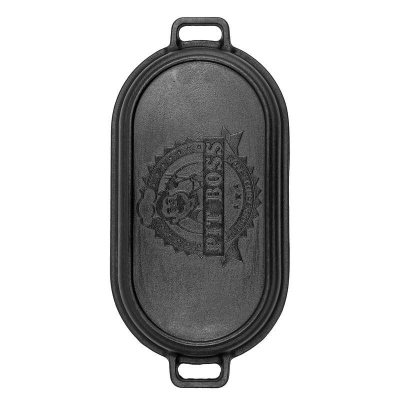 Cast iron roaster pan & griddle lid This all-in-one roasting pan holds 6 quart & features a lid that doubles as a portable griddle. You’ll love the cooking performance behind the 100% cast iron material. It heats evenly & excels at maintaining extremely high temperatures. The sturdy, heavy-duty build allows the roaster pan to last for years to come & the non-stick surface improves with each use. You can craft mouthwatering recipes by baking, braising, roasting, stewing, griddling & more. Treat your family meals they’ll love with the Pit Boss cast iron roaster pan & griddle lid. The Pit Boss cast iron roaster pan & griddle lid is pre-seasoned & ready to use out of the box. It’s safe for use in oven or campfire, & can be used on gas, charcoal, or wood pellet grills. 100% cast iron.