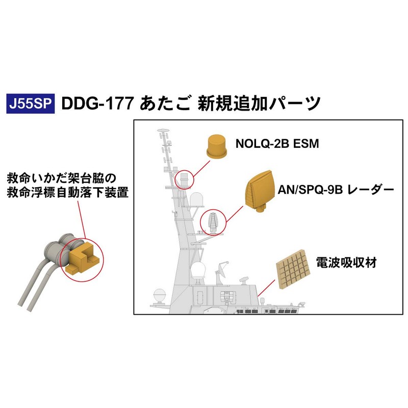 - New additional parts: AN/SPQ-9B radar, NOLQ-2B ESM, radio wave absorber and life-saving automatic drop device