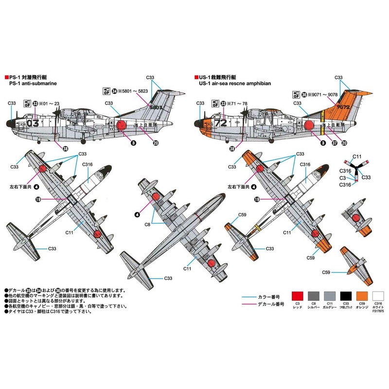 - Marine Self-Defense Force PS-1 Anti-Submersion, US-1 Rescue Aircraft (1 Each)