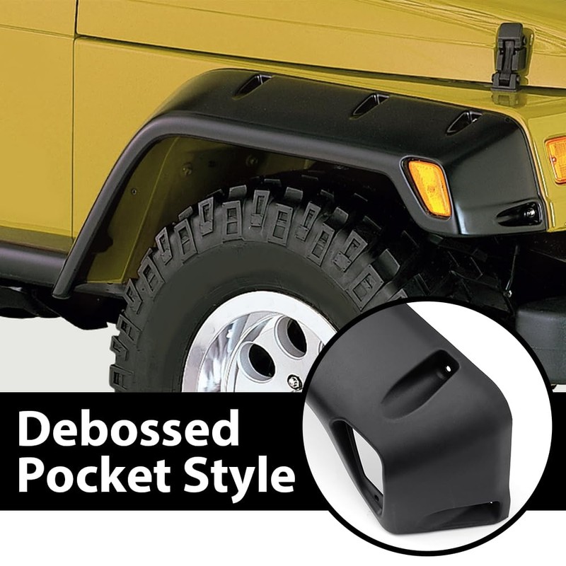PIT66 Fender Flares Compatible with Jeep Wrangler TJ 1997-2006/Wrangler LJ 2004-2006 (Not fit Sport Sport Utility Models), 6'' Wide Smooth Pocket Extended Style Wheel Protector Cover,4pcs