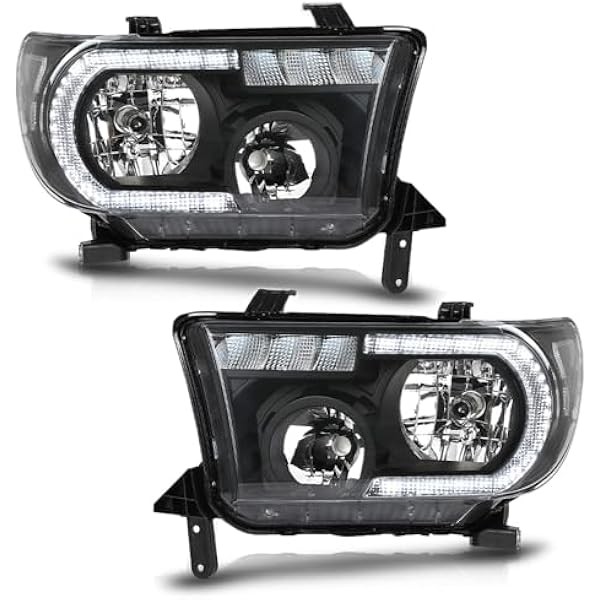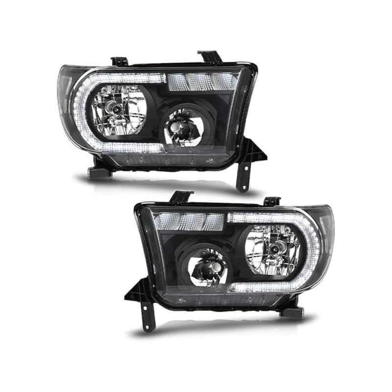 PIT66 LED Headlights Assembly, Compatible with 2007-2013 Toyota Tundra /2008-2017 Toyota Sequoia Driver and Passenger Side Headlamps Assembly Clear Lens Black Housing Clear Reflector