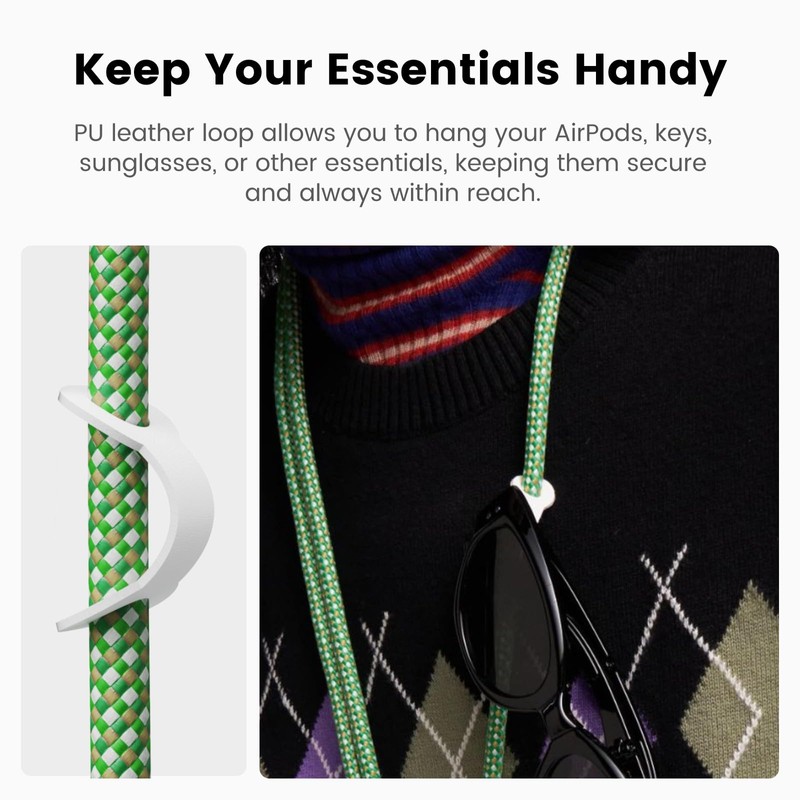 - [Keep Your Essentials Handy] PU leather loop allows you to hang your AirPods, keys, sunglasses, or other essentials, keeping them secure and always within reach.