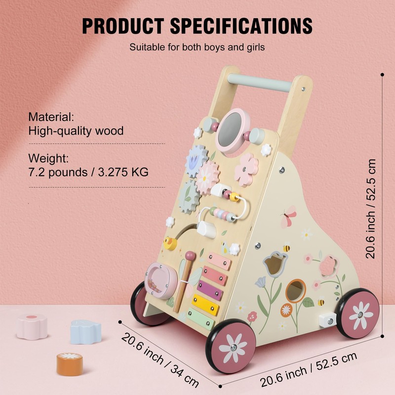 - MULTI-FUNCTIONAL BABY WALKER: The Baby Push Walker comes equipped with many montessori sensory activity toys, including a mirror, bead maze, xylophone, spinning gears, shape sorter, and sound button providing a diverse range of play experiences for your baby.