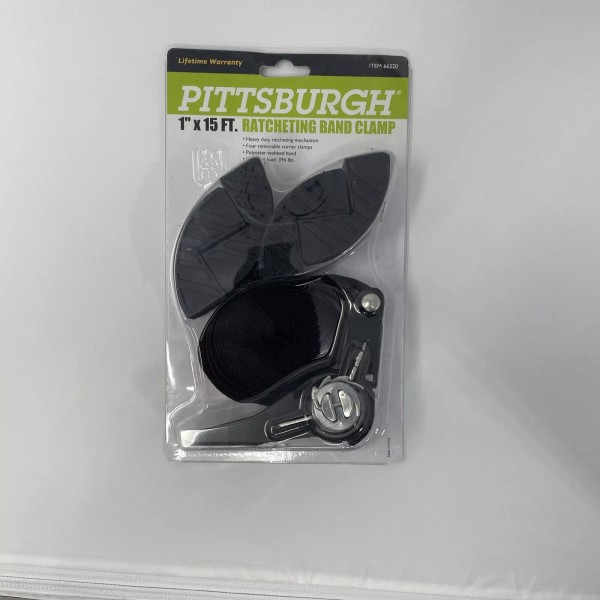 Introducing the Pittsburgh brand woodworking band clamp strap, a must-have tool for any DIY enthusiast or professional woodworker. This versatile band clamp is designed to securely hold and join wood pieces together with its ratcheting mechanism and strong, durable strap.
