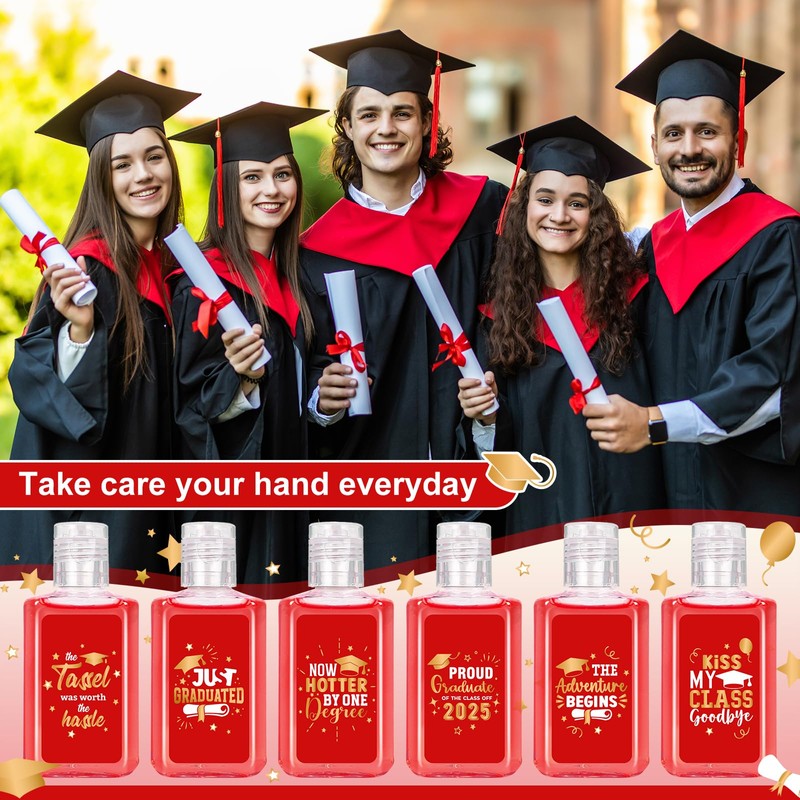 - 2025 Graduation Design: These 1 oz graduation hand sanitizer bulk packs feature a congratulations graduate and graduation cap graphic design; accompanied by inspiring wishes, these lovely gifts add positive emotions and unexpected joy to any party decoration, enhance the festive atmosphere