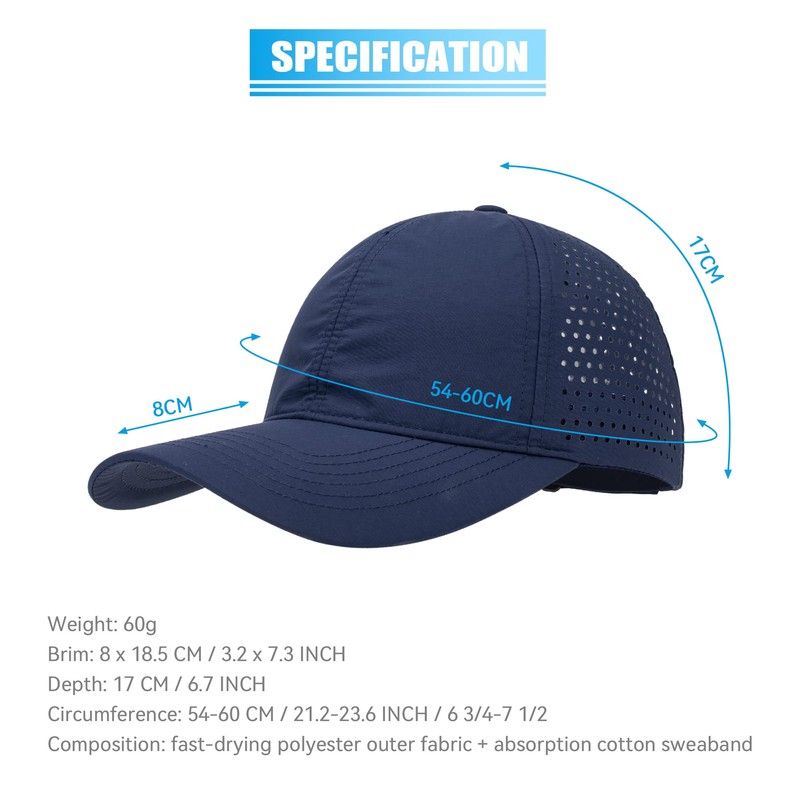 Pivoting Running Hat for Men Women Summer Breathable Tennis Golf Hats Baseball Cap for Hiking Fishing Workout Athletic Gym Outdoor Quick Dry Caps Cooling Hats Sun Protection UV, Dark Blue