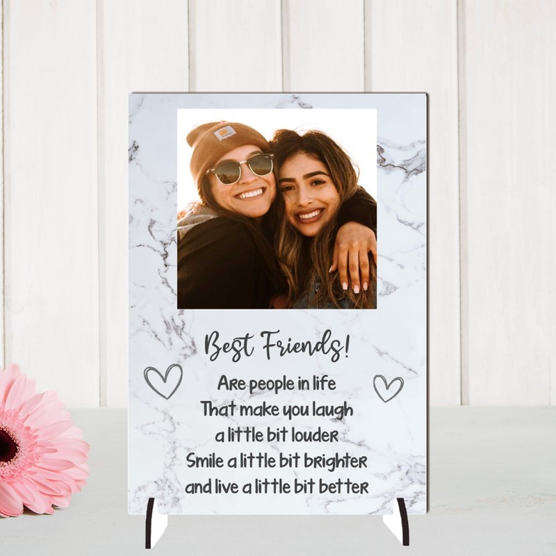 - Order a Laser Cut Personalised Photo Friendship Plaque On Stands today and let your friend know just how much they mean to you. Each plaque is a heartfelt reminder of the special bond you share, lovingly created by our family team at Pixie's Gift. 🎁