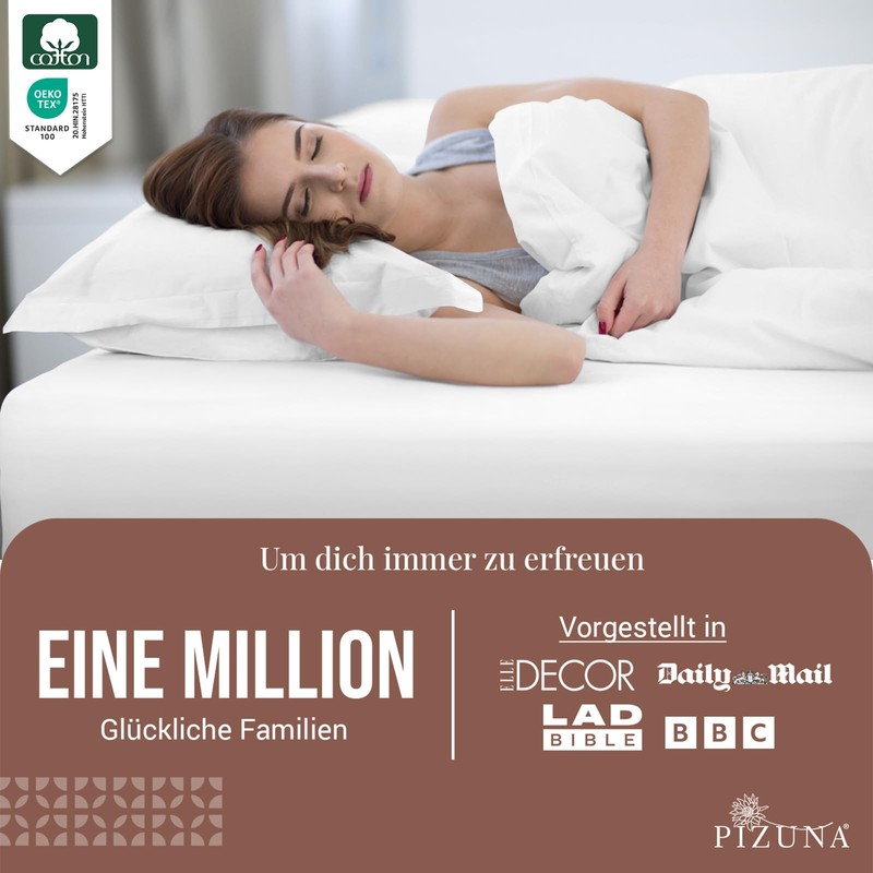 - Pizuna - Quality standard: Strict checks and quality checks of each individual piece are carried out by the quality assurance team at Pizuna This sheet set is Oeko-Tex and AZO-free certified (2024), free of synthetic substances, environmentally friendly and which makes it soothing even for the most sensitive skin.