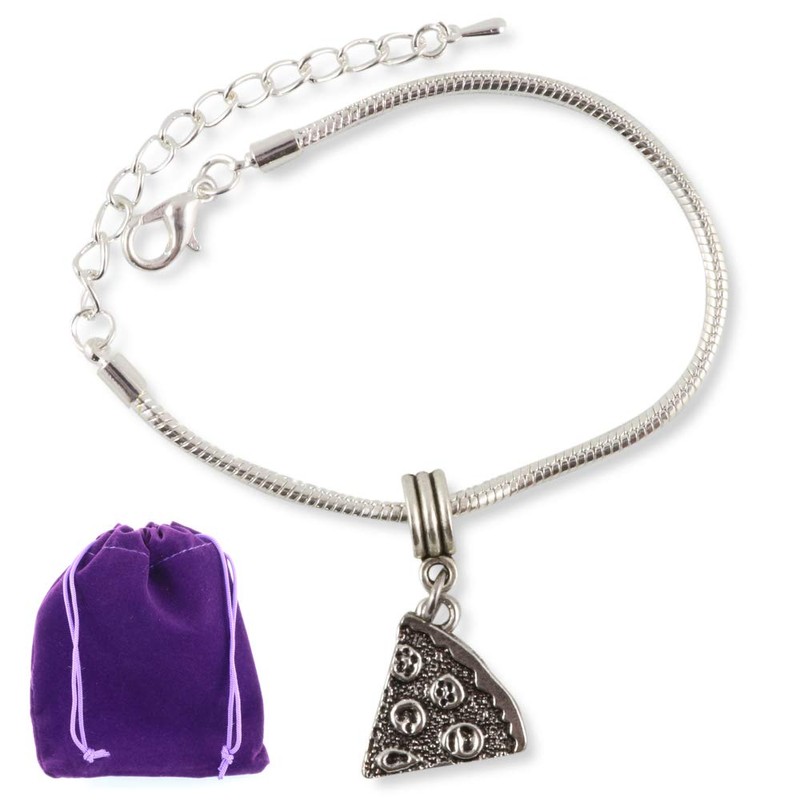 Pizza Bracelet - Stainless Steel Snake Chain with Metal Alloy Charm for Party Favor, Pizza Party Decorations - Elegant and Durable Jewelry for Special Occasions