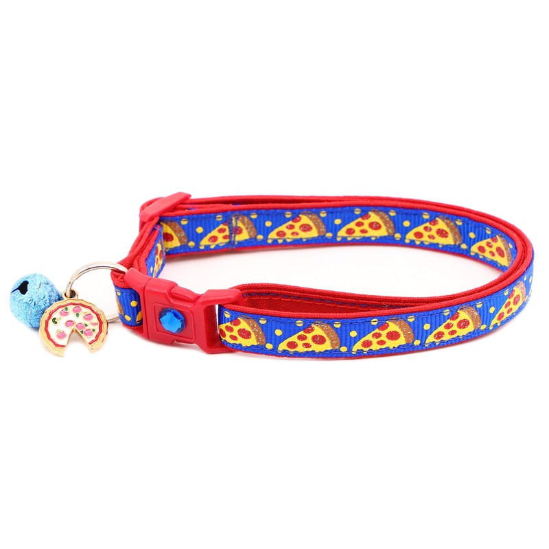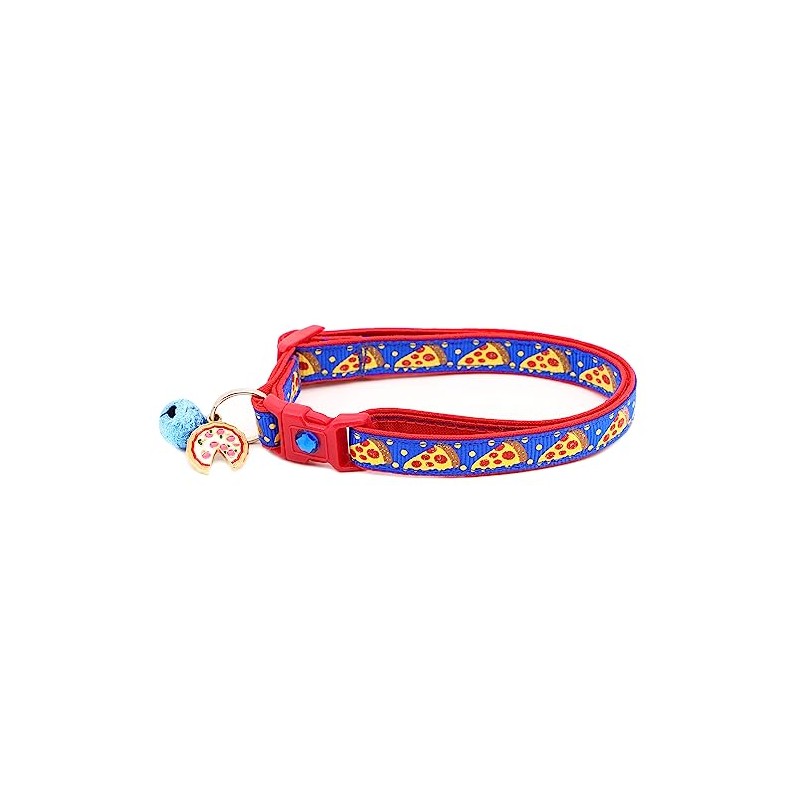 Pizza Cat Collar with Bell | Safety Breakaway Collar | Adjustable Large Size or Kitten Collar (Large(10lbs & Up), Blue)
