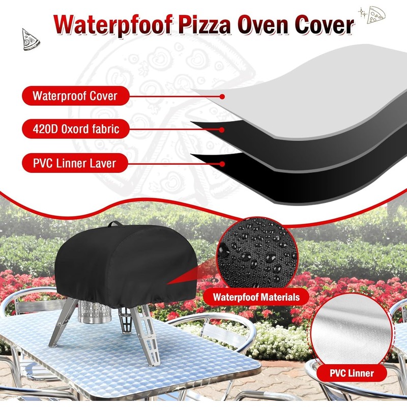 - Easy to Clean and Store You can rinse the dust directly with water and then dry. This pizza oven grill cover is equipped with a storage bag, which is convenient for you to fold and store it when not in use. If you have any questions, please contact us directly.