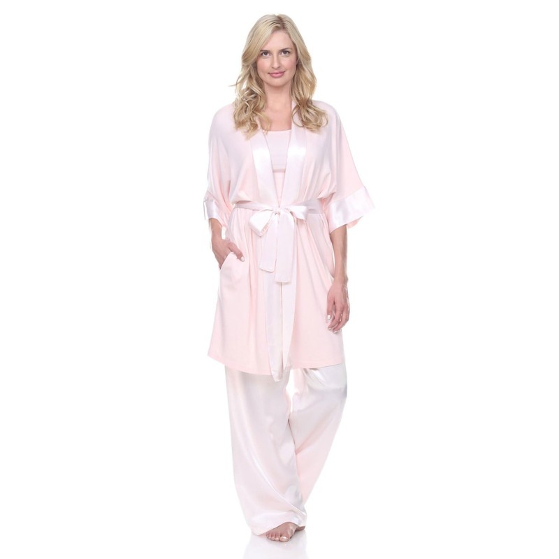 - Made With Our Blend Of Cotton And Spandex This Robe Features A Satin Trim And A Matching Satin Tie Attached At The Back, So You'll Never Loose It