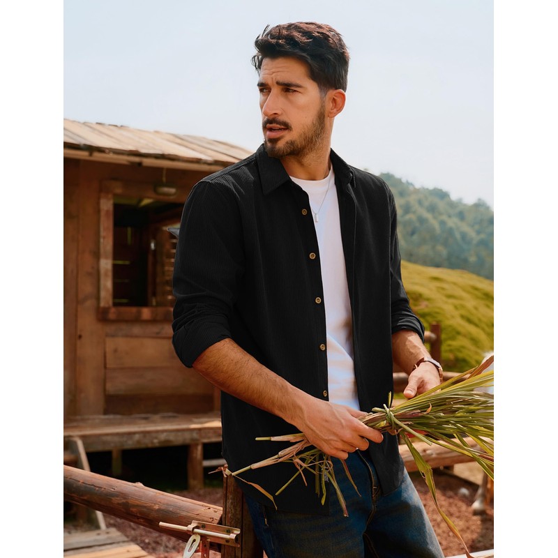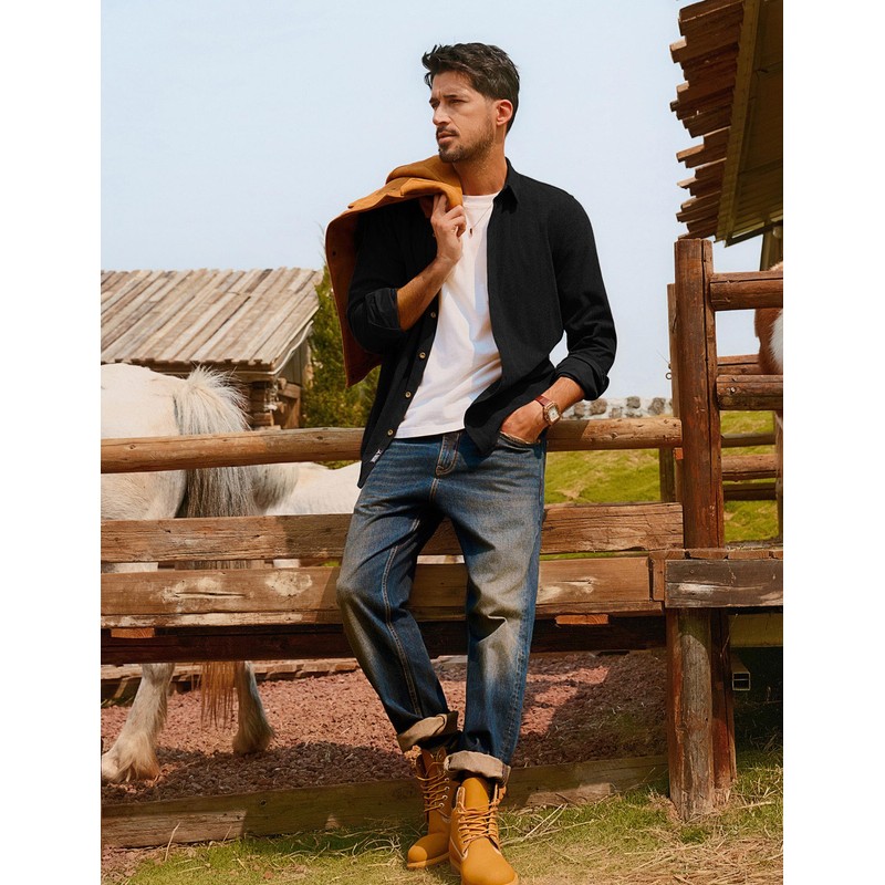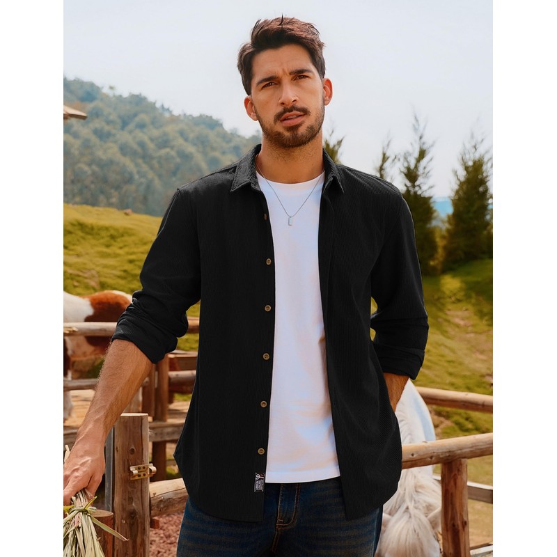 - Corduroy Fabric – Crafted from high-quality soft corduroy fabric, this men's casual button down shirt offers exceptional comfort, breathability, and long-lasting wear, perfect for both casual outings and work environments