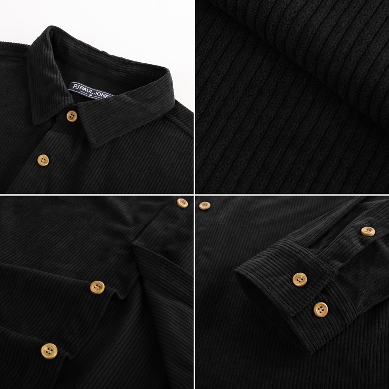 PJ PAUL JONES Men's Corduroy Shirts Casual Button Down Shirt Jacket Lightweight Shacket Black