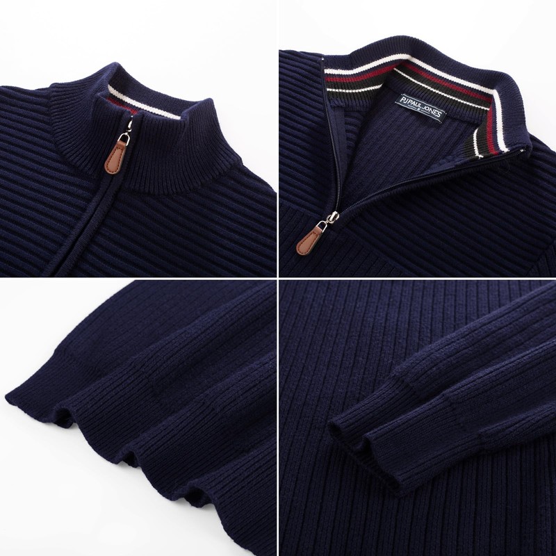 PJ PAUL JONES Men's Long Sleeve Troyer Jumper with Zip Pullover Sweater, navy, L