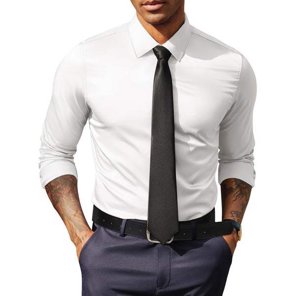 - 【Flex Silky & Slightly Shinny Fabric】Mens long sleeve dress shirt is made of ultra-smooth, lustrous fabric with slight stretch for superior comfort and flexibility. Breathable, wrinkle free material ensures a crisp look without ironing, perfect for travel and daily wear