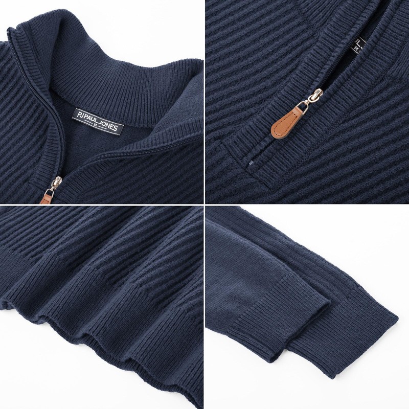 PJ PAUL JONES Mens Turtleneck Jumpers 1/4 Zip Troyer Long-Sleeved Knitted Sweater Winter Pullover