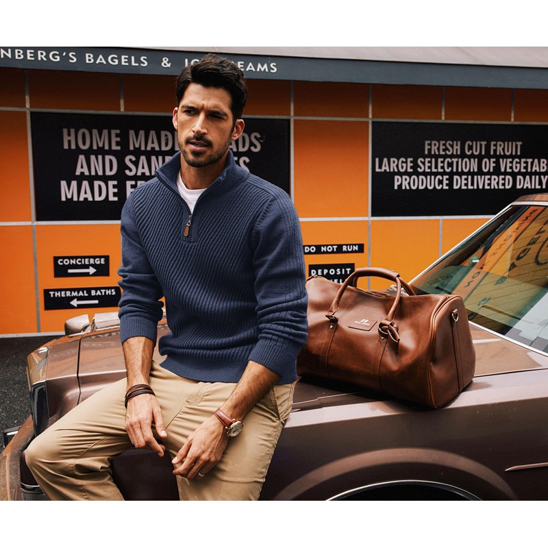 - Fashionable design: this knitted jumper with 1/4 zip troyer for men features a unique design with stand-up collar that effectively blocks cold wind and ensures that you stay comfortable and warm all day long. The long sleeves, ribbed cuffs and hem as well as the fine knit give the men's half zip jumper a touch of elegance and combine comfort perfectly with modern style
