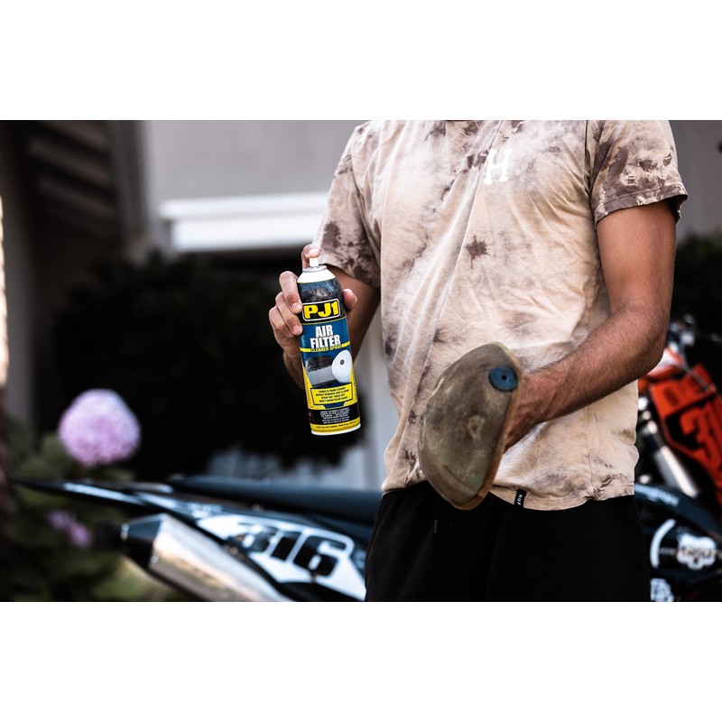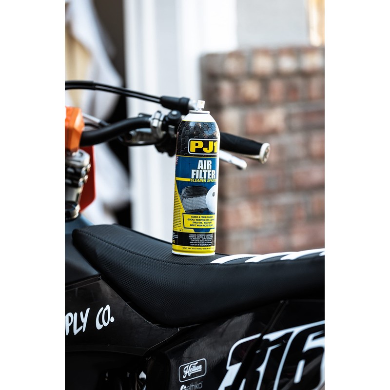PJ1 Air Filter Cleaner quickly removes dirt, grease, and grime with a simple spray on, wash off process. Eliminates soaking and rinsing dirty filters in gasoline & other solvents. PJ1 is will not harm filter glues and is safe and easy to use.