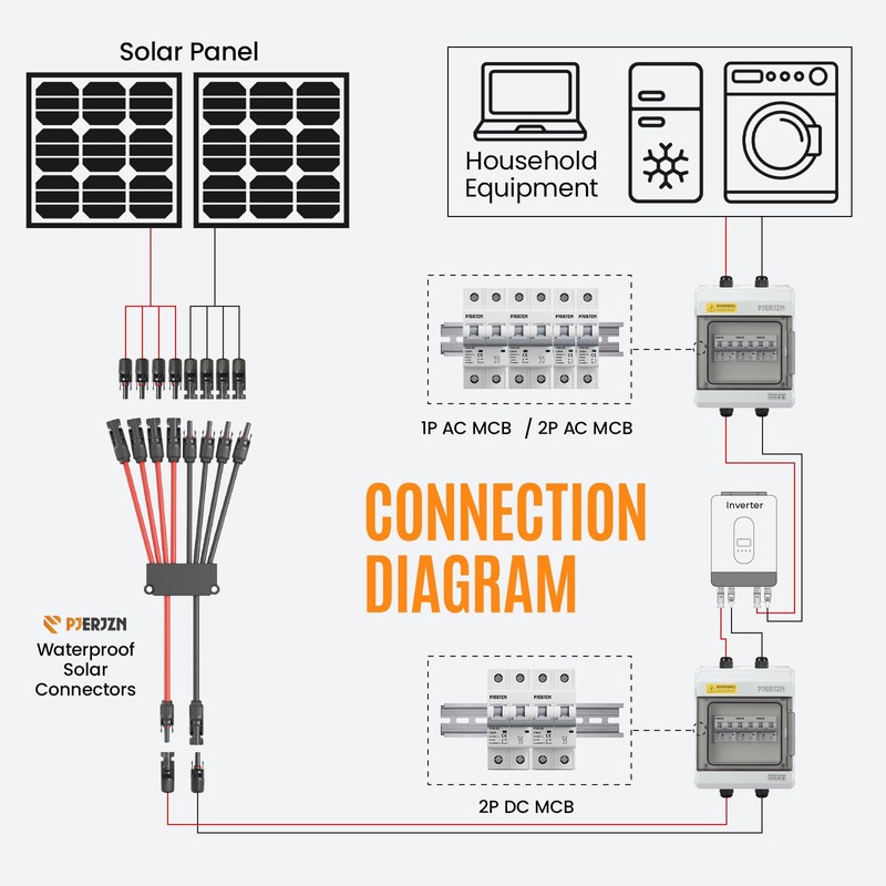 - Extended Branch Design for Hassle-Free Setup: PJERZJN's innovative Y branch connectors to ensure flexible panel placement without requiring extra extensions. Engineered for parallel connections of 2-12 solar panels, our thickened 6mm² (10AWG) main cables and 4mm² (12AWG) branches minimize voltage drop, delivering stable power transmission even in complex installations