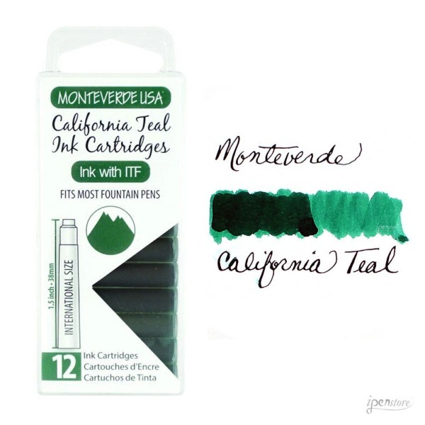 Pk/12 Monteverde Fountain Pen Ink Cartridges, California Teal
