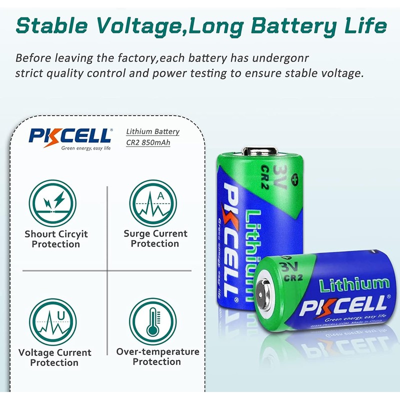 • Long Lasting: PKCELL CR2 3v batteries have high energy density that will last 3-5 times longer than alkaline one-time-use batteries when using in high drain devices