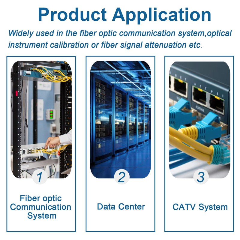 - 【Product Application】Widely used in fiber optic communication, fiber optic testing equipment, fiber optic cable television, etc. Usually used for debugging fiber optic instruments, attenuation of fiber optic signals, etc.