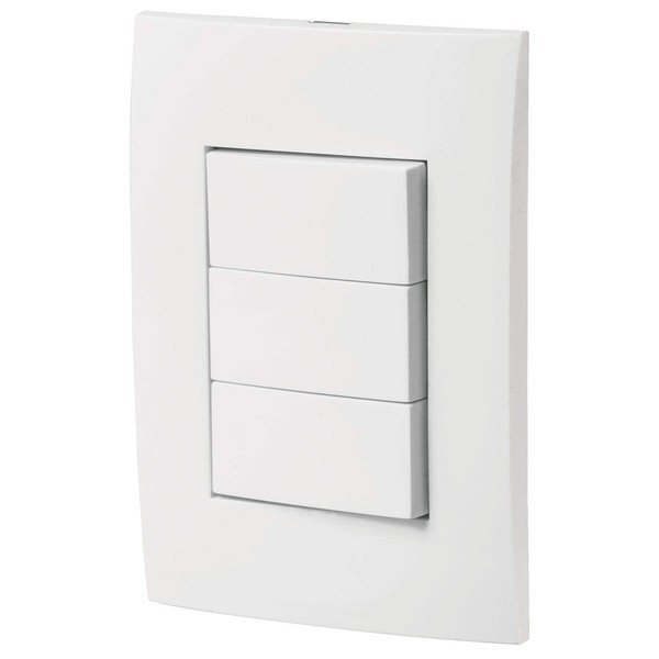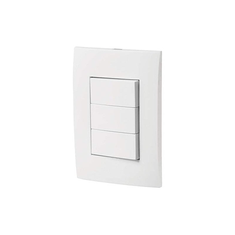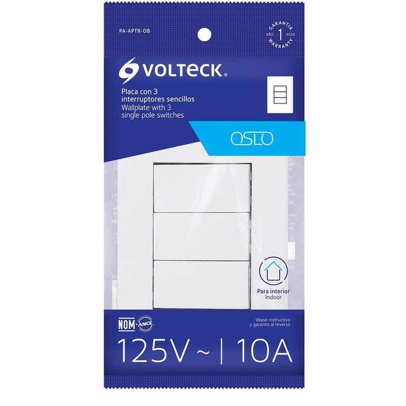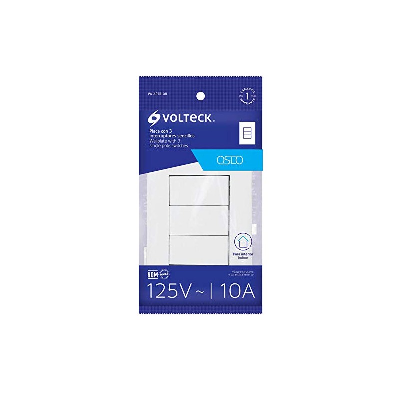 Placa armada 3 interruptores sencillos, línea Oslo, blanco Volteck