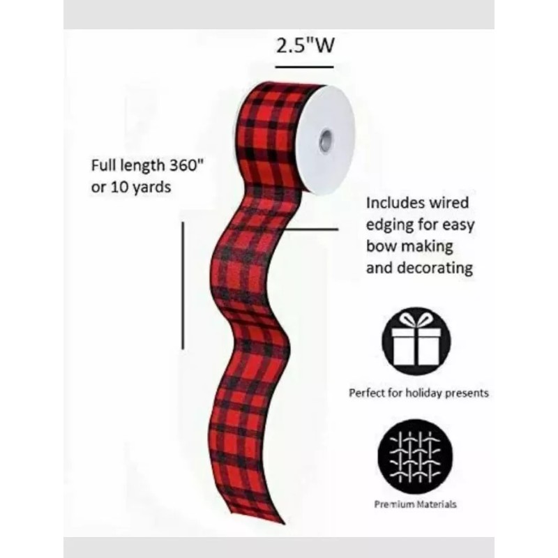 Plaid Cypress Home Decorative Holiday Accent Red Buffalo Plaid Ribbon 2.5" x 10 Yards
