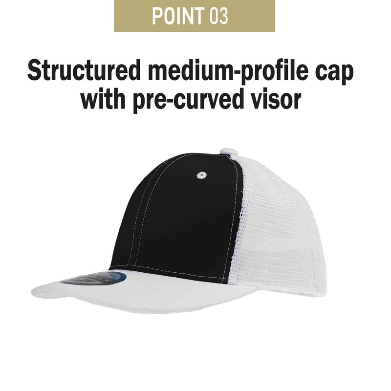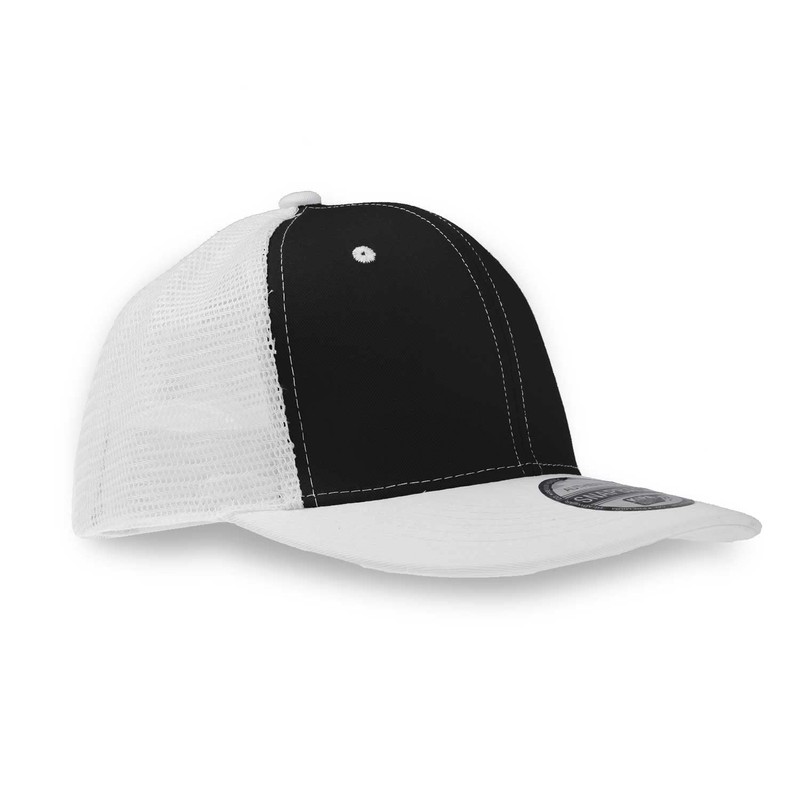 PLAIN GEAR Dispatch Trucker Cap - High Crown Mesh-Back Adjustable Strap Snapback Hat (White/Black)