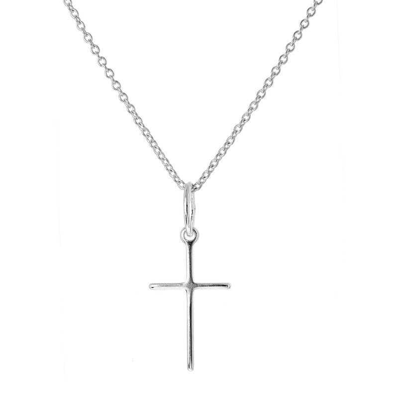 Plain Light Sterling Silver Cross Pendant on 22 Inches Chain