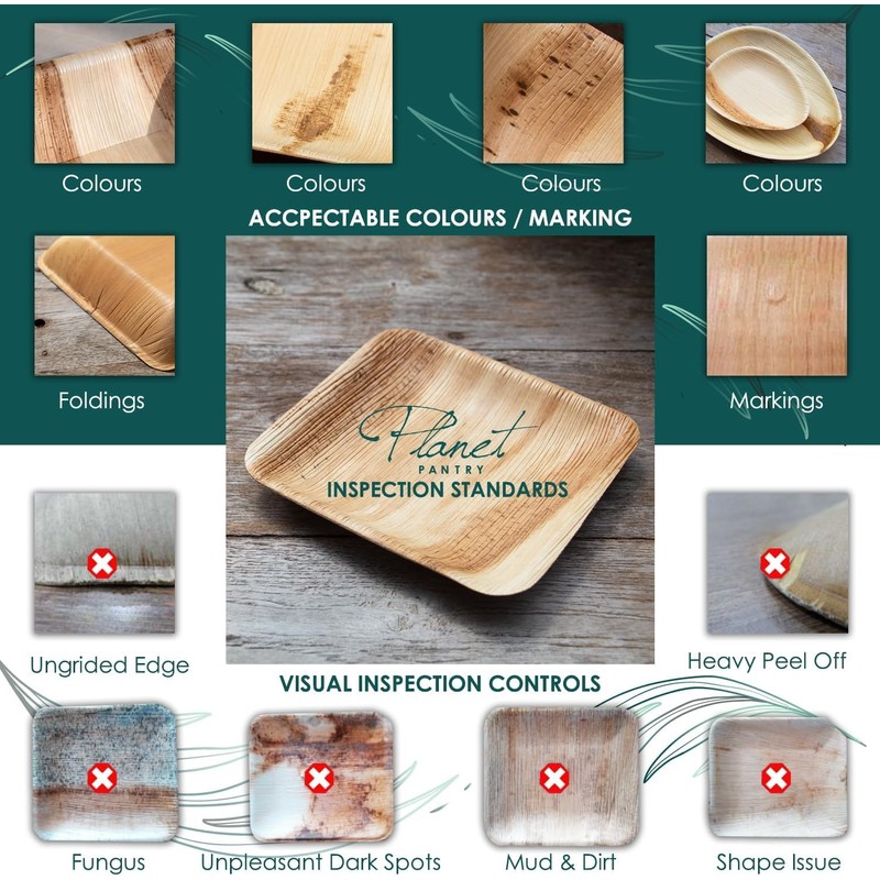 Sturdy - Made only from good quality selected palm leaves to safely hold many different kinds of food. Stronger and more natural than corn or potato starch, sugar cane, paper & bamboo plates