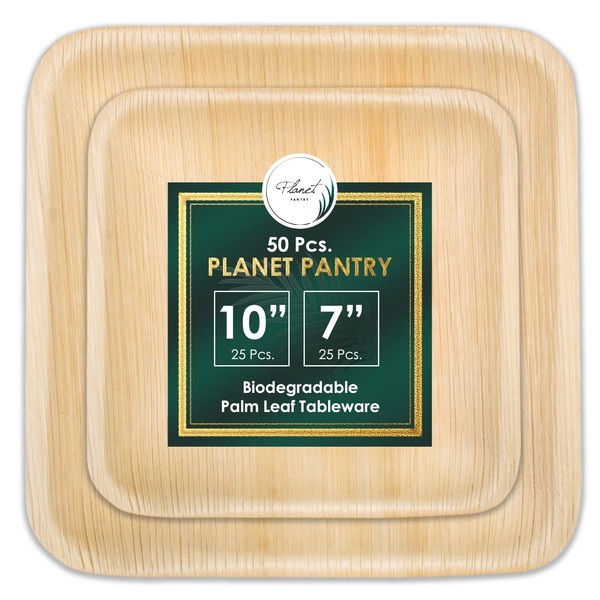 Planet Pantry Disposable Palm leaf Party Pack 10" (25 pcs) & 7" Square Plate (25 pcs) Bamboo Like Style - Paper and Plastic Alternative
