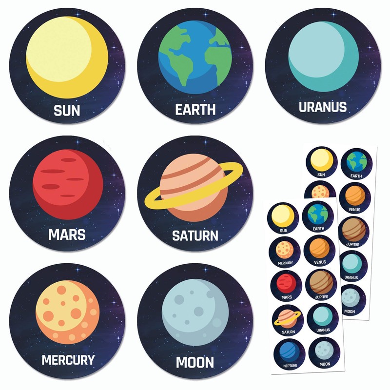 Planet Solar System Stickers for Kids, 1.5" - 20 Sheets, 200 Stickers