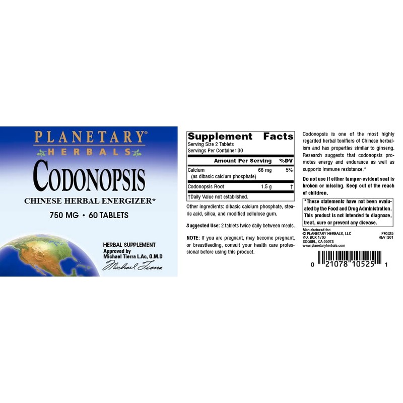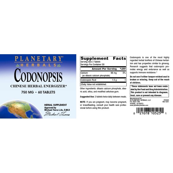 Planetary Herbals Planetary Herbals Codonopsis Tablets, 750 mg, 60 Count