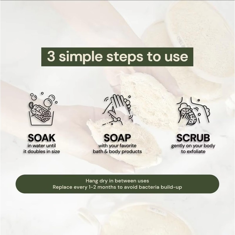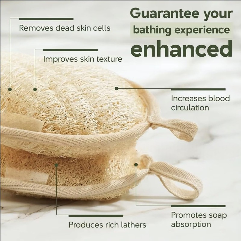 - Plant-Based Natural Loofah Sponge Exfoliating Body Scrubber, Made with Eco-Friendly and Biodegradable Shower Luffa Sponge, Beige color